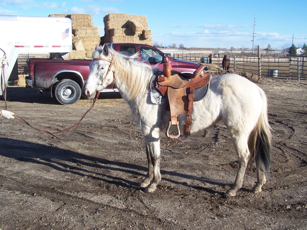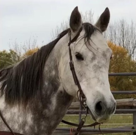 “Moses” 11 year old, grey, grade gelding. Broke and beautiful, he’d make a nice project for someone. Has been used as a hunter/jumper by a teen and most recently ridden in a feedlot. Contact us for prices and info on this pretty horse! Sold