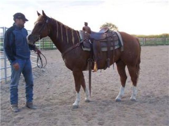 Pokeys Lil San – 2004 AQHA gelding. Cow bred with some speed. “Ringo” is a rope horse prospect deluxe. Well started and being ridden daily. Great conformation, sound, healthy, UTD on shots, deworming and farrier care. Ready to finish and go to work for you. Sold