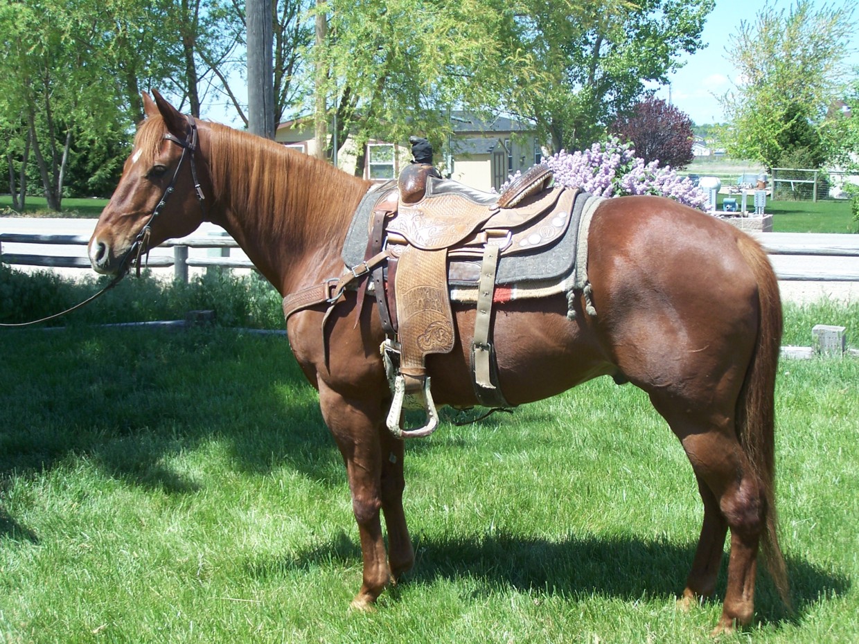Machs Fudgecycle, 2000 AQHA Gelding. “Kelly” is a no drama horse that most anyone should get along with. Ride him once a year or every day and he’s the same. He rides great outside, on the mountain trails, or in the arena. At 14.3 hands he is just the right size for everyone in the family. He is safe and steady in any environment. Crosses water, logs and goes all day in rough country. He is very quiet, respectful and the kind of horse that builds confidence in a timid rider. Sold 4/14/2013