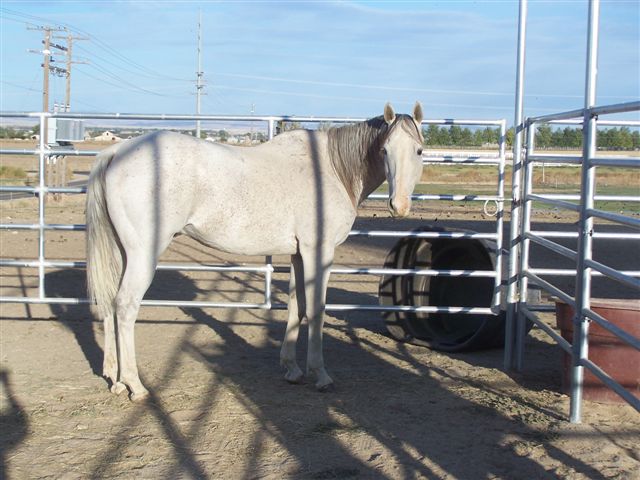 “Gracie” Pretty little project horse. Aleutian Irish Grace, AQHA 4 year old mare. Beduino, Rocket Bar, Heza Commander bred. Gracie has speed and skill and she is an eye catching, well bred, gray. She is green broke and riding better every day. She’s a good investment for someone who has a little time to go on with her training or she’s ready to breed this spring. Sold