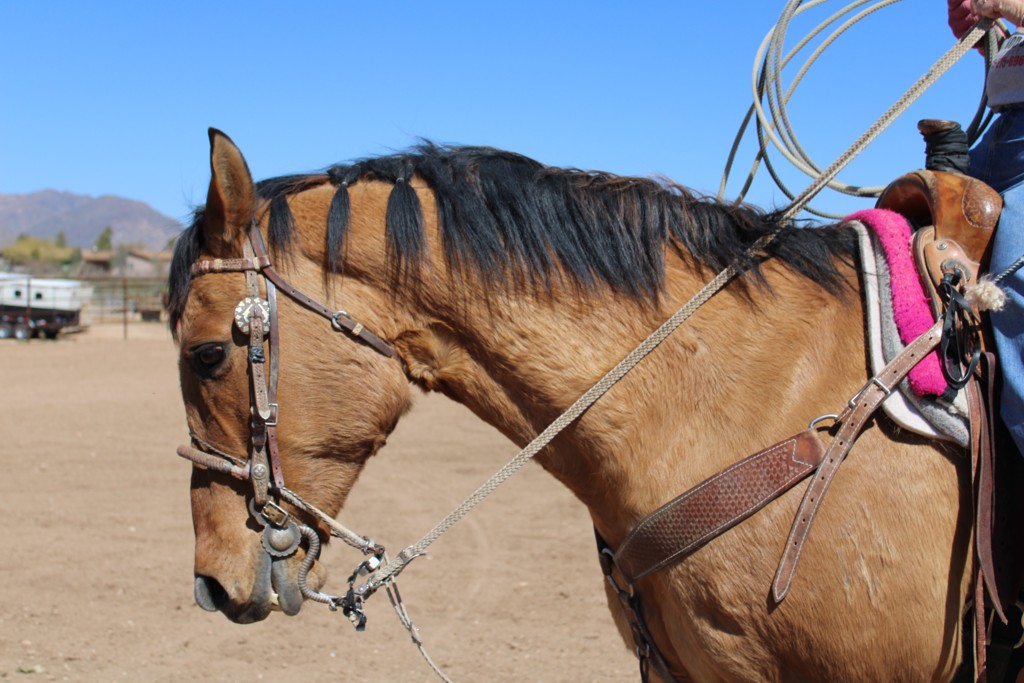 “Bingo”– Versatile dun gelding who ropes both ends and has been used to gather and brand cattle. Bingo was hauled to jackpots in Arizona last winter and roped on at the house nearly everyday March 1 – May 1 during the Covid quarantine. Scores good, has a good move on the heading side, and good to heel on. Plenty of speed and true zebra dun color. Easy keeper, good to shoe, clip, and haul. Sold 6/21/2020