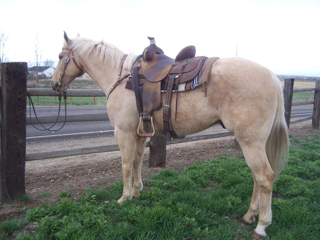 Dandy Miss Zan, 2007 Palomino Mare. 14.1 hands 1050 lbs. Broke, gentle and sensible, “Zanny” is a cool little mare. She has a big heart and a loving personality. She’s an awesome trail horse, suitable for a timid rider or a beginner. She is very quiet and easy to handle with no spook. Bred in Kansas, AQHA #4716159, By a Two Eyed Jack, Zan Parr Bar bred sire and out of a cow bred mare (Doc’s Prescription,Mr San Peppy,Cutter Bill) “Zanny” will watch a cow, preform in the show ring, or be an excellent broodmare. Just back from a 3 day mountain trail ride. New shoes, UTD on vet and dental care. Consigned to Hell’s Canyon Mule Days Horse Sale, Sept. 8th, 2012. Sold 9/14/2012