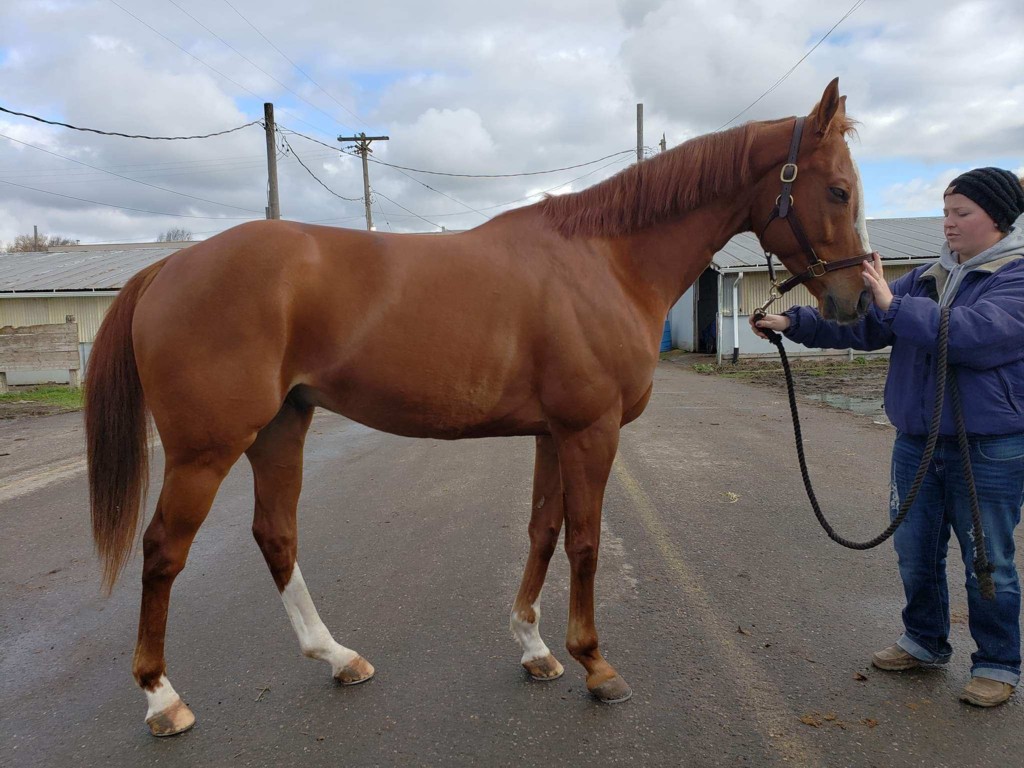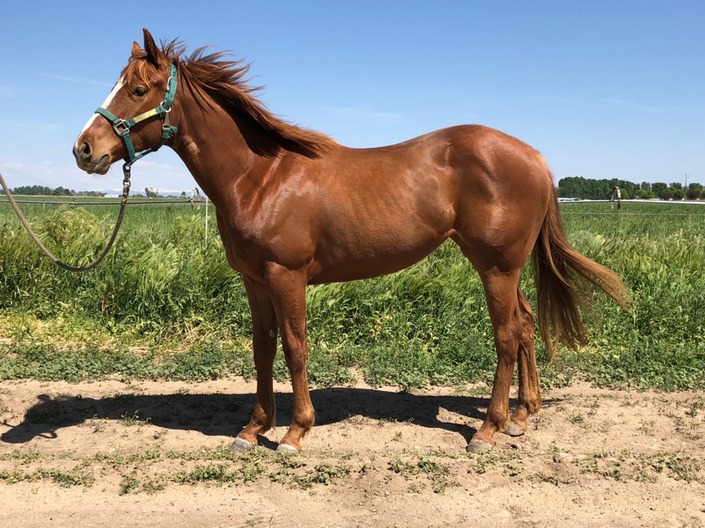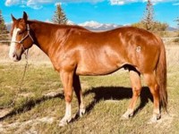 MOS ANGELIC, 2008 AQHA Sorrel Mare. “Elle” is a seasoned barrel and pole horse. She does all the playday games, rides out on the trail, and has been used to sort and gather cattle. She is well broke and well bred with Zan Parr Bar and Docs Malbes on her papers. She has won junior rodeo and playday all around titles along with year-end awards. Currently running 3D barrels and low 21’s in poles. She would be a great mount for a handy pee wee or junior high rodeo girl. She would also fit an adult rider who enjoys competing in jackpot barrels, poles and other speed events. She has the potential to be faster in both poles and barrels with a rider who fits her. Elle was vet checked on 2/25/22 at Idaho Equine Hospital. She does not require any maintenance but does have Fibrotic Myopathy from an old injury to her right hind leg. This vet check is available upon request and additional PPE’s are welcome at buyer’s expense. Elle is a very pretty mare that anyone would be proud to own. Sold 4/5/2022