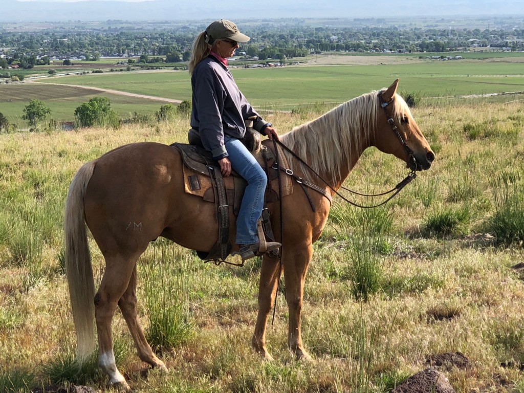 “Moonlight” is an excellent trail and mountain horse who is very willing and good natured. He rides outside perfectly, over obstacles, down the trails, out in the desert, gathers cows like a champ, and has fun doing any task he is asked to do. He is a beautiful gelding with unusual color, a long mane and tail, and chocolate highlights. He saddles up like a gentleman every ride. He is well mannered, hauls, stalls, pastures, bathes, and he’s my farrier’s favorite horse to shoe because he has excellent feet and stands like a rock. He has been my go-to trail horse this past year and we have been on many adventures in groups and out alone. He is independent and confident, sure-footed, stout, and strong. He can outwalk any big horse all day long and he has! He is not spooked by snakes, dogs, badgers, javelinas, snowbirds who drive too fast on dirt roads, motorcycles and side by sides. He is good-minded and safe. In the arena he has a nice stop and turnaround, opens and closes gates, has nice lead departures and the look to catch a judge’s eye. With his heart, speed, and solid foundation he would make an amazing show, ranch, goat tying, rope, playday or junior rodeo horse. He is UTD on vaccines, health care, dental and farrier care. Moonlight is consigned to the Salmon Select Sale on April 12, 2025 in Salmon, Idaho. The sale offers online and in person bidding. Moonlight is hip # 52. Visit salmonselectsale.com for sale information. Come and try him before the sale. He is in Congress, Arizona (near Wickenburg) until sale week. Sold 4/15/2025