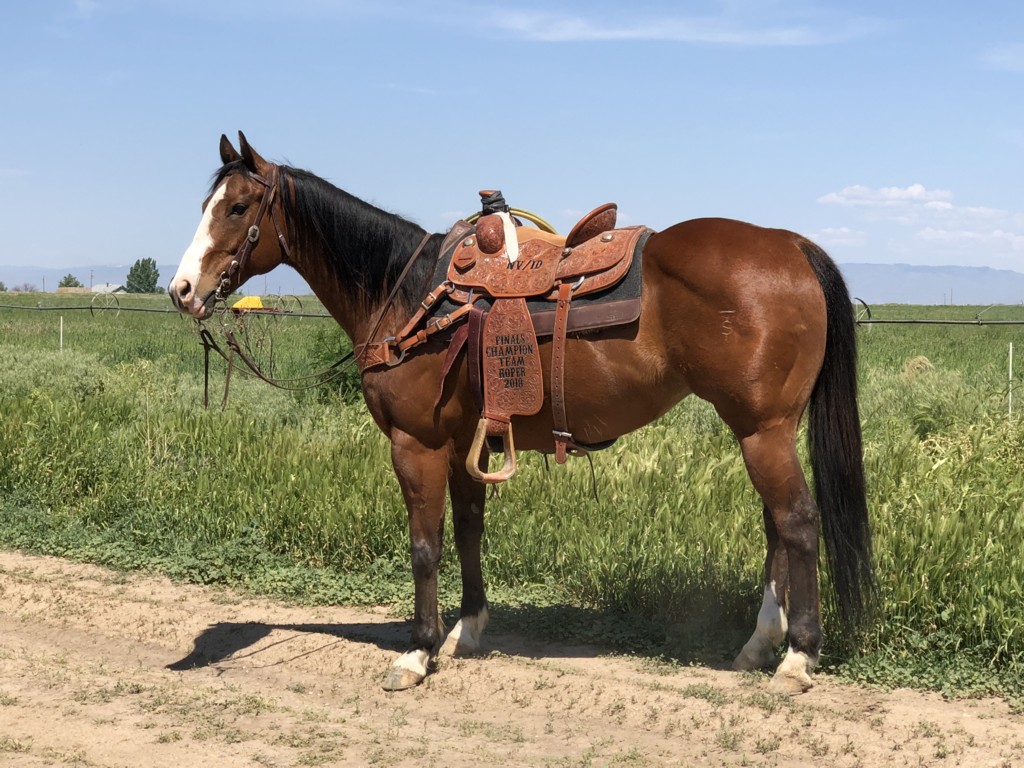 Zan Bar Nic, 2010 Bay AQHA Gelding – Pretty, easy going, athletic, gentle, kind, and fun to ride. “Walter” is a bomb proof trail horse. He is started heading and heeling the Smarty. He has a ton of undeveloped talent as a rope horse on both ends. His papers are loaded with great horses. He’s by Zan Parr Nic (reining and cow horse point and money earner, sire of earners and an APHA reining world champion) , a notable son of Reminic whose dam is by Zan Parr Bar and out of the great mare Sparkles Rosezana (NRHA futurity champion, LTE of $123,380 and 258 points in 6 events) His dam, Sheza Docs Bars goes back to Flit Bar, Sugar Bars, Driftwood and Azure T. He’s a great cross of cow, speed and foundation horses and it shows! This gelding is smart and willing to do anything ask of him. We will continue his roping training, riding and enjoying this gelding until someone buys him. Sold 7/18/2020