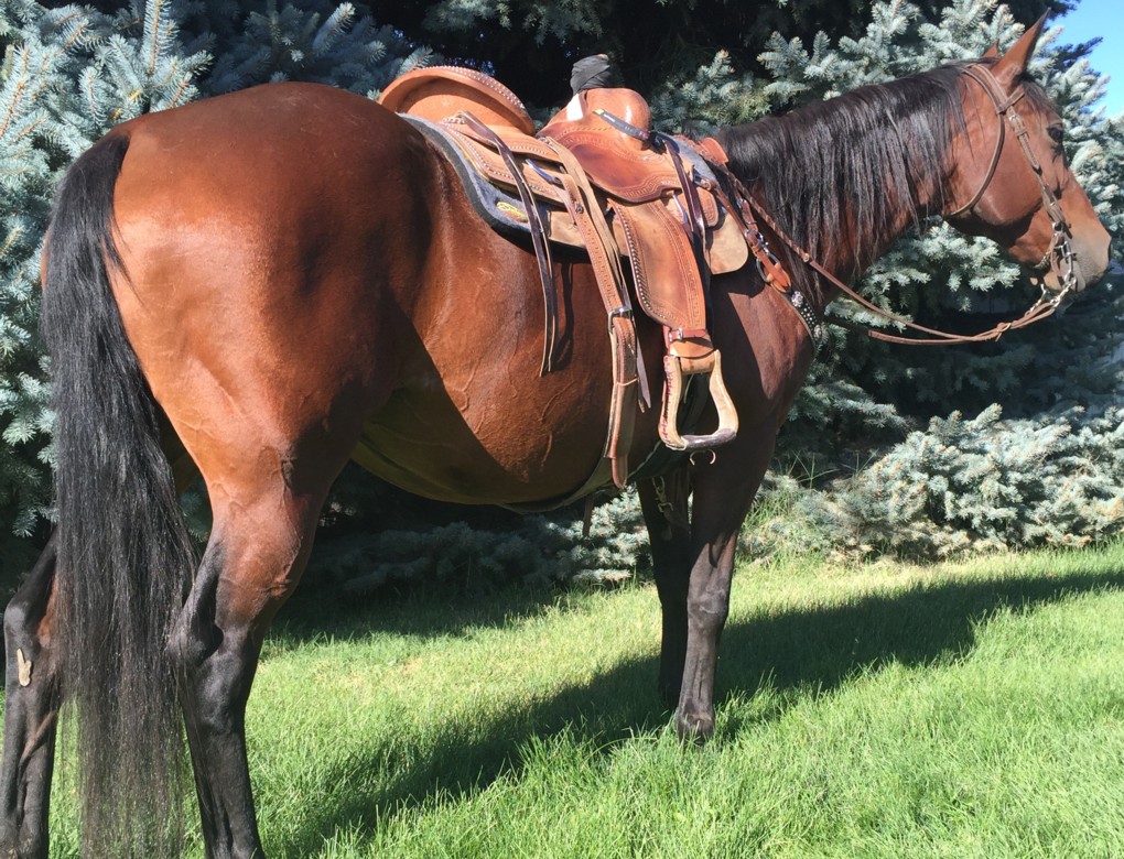 “Rodney” – 2012 grade bay gelding. Rodney rides down the trail with a big walk and comfortable gaits. He’s easy to catch, load, shoe, he stands tied, and gets along well about anywhere. He’s been used as a racetrack pony. We used him to snub a horse for the first ride and he was great. He would be perfect for someone who needs a horse that can cover the country, a job on the ranch, or a backcountry rider. He loves the trail and he can go all day. 15 hands, great feed and bone and ready for a job. Sold 4/23/2022
