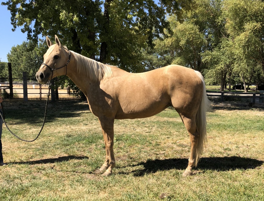 “Gus” Gus is a showstopper with his golden palomino color, platinum mane and tail, and flawless conformation. He is a 14.3 hand 2013 grade gelding who is kind, gentle, loves people and is the perfect size and shape! He is easy to catch, haul, shoe, he stands tied and he is a super sweet, willing horse.He rides out nice on the trail. In the arena he has a big stop and has been very willing to learn collection, circles, lead departures, and lateral movements. Gus is currently being hauled to many activities, ridden on desert trails and in traffic, and doing lots of arena riding. He is fit and ready for a job. UTD on vaccines, deworming and farrier care. Had a complete dental in May. Sold 7/17/2021