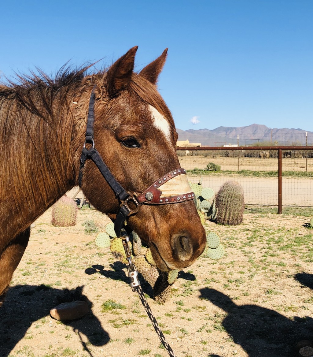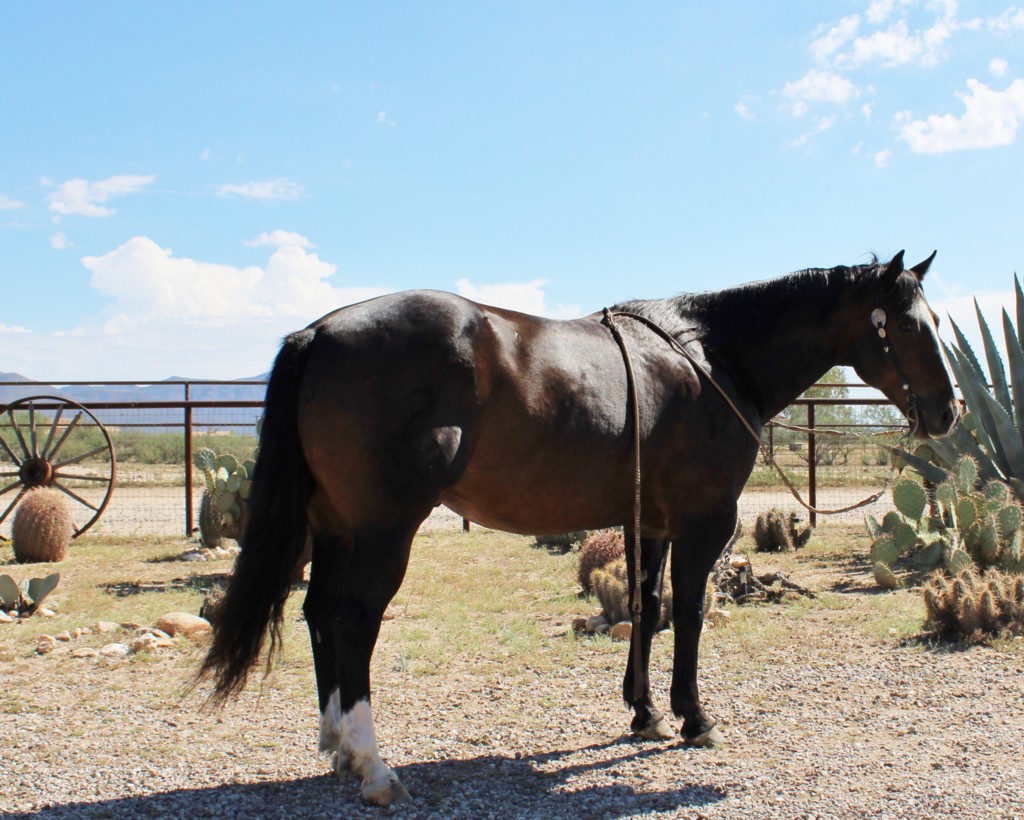 “Lucky” – If you need a solid senior ranch horse who can trail ride, gather cattle or be ridden by kids Lucky is the one. He has been ridden by all levels of riders and used on a large Arizona ranch. He will walk slowly and stand still in the arena for a beginner or he will go with a rein swinging walk down a mountain trail or on the ranch gathering cattle. He would do well in playdays or 4-H shows. Approixmately 17 years old, 15 hands. Sold 5/6/20234