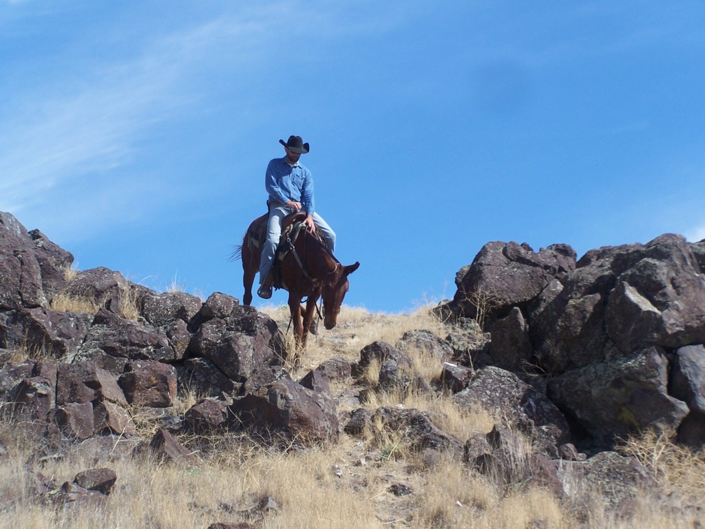 “Deacon” – If you need a good looking, fun loving traveling partner this is the horse for you. Cute, friendly, well broke gelding. Big walk, great attitude, and he’s “Meet you at the gate” gentle. He’s been ridden many places from long rides in the foothills, pushing the steers, or waiting patiently in the trailer at the mall on the way home. 12 years old, 15 hands, Ready for a job. Sold 4/14/14