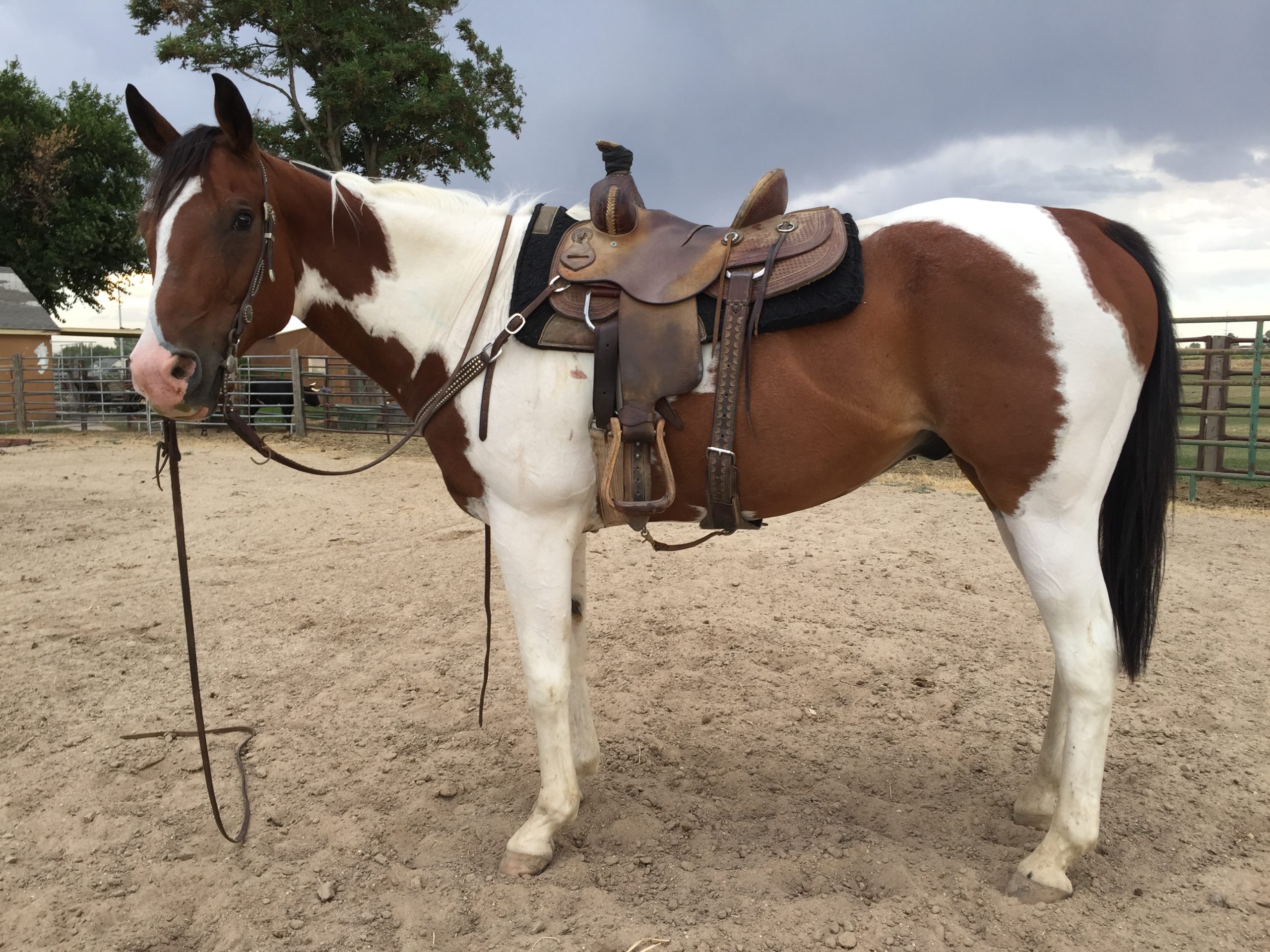 “True”, Gentle and safe, True is the kind of gelding everyone can enjoy; He’s a been there and done that type of horse. He has worked as a guest horse in Montana and seen miles of mountain trails. Flashy brown and white paint, 15.2 hands. UTD on dental, new shoes and deworming. Sold 1/4/2021