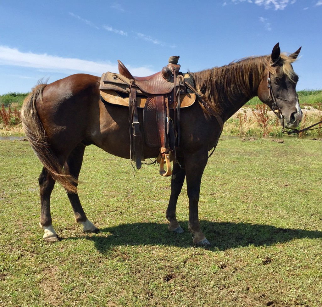 “Murray” 14 year old grade ranch gelding. He has been to hunting camp for the past 8 years. Used in all phases of ranch work and has been used to pick up bucking horses. A nice trail horse and gentle for anyone to ride. Sold