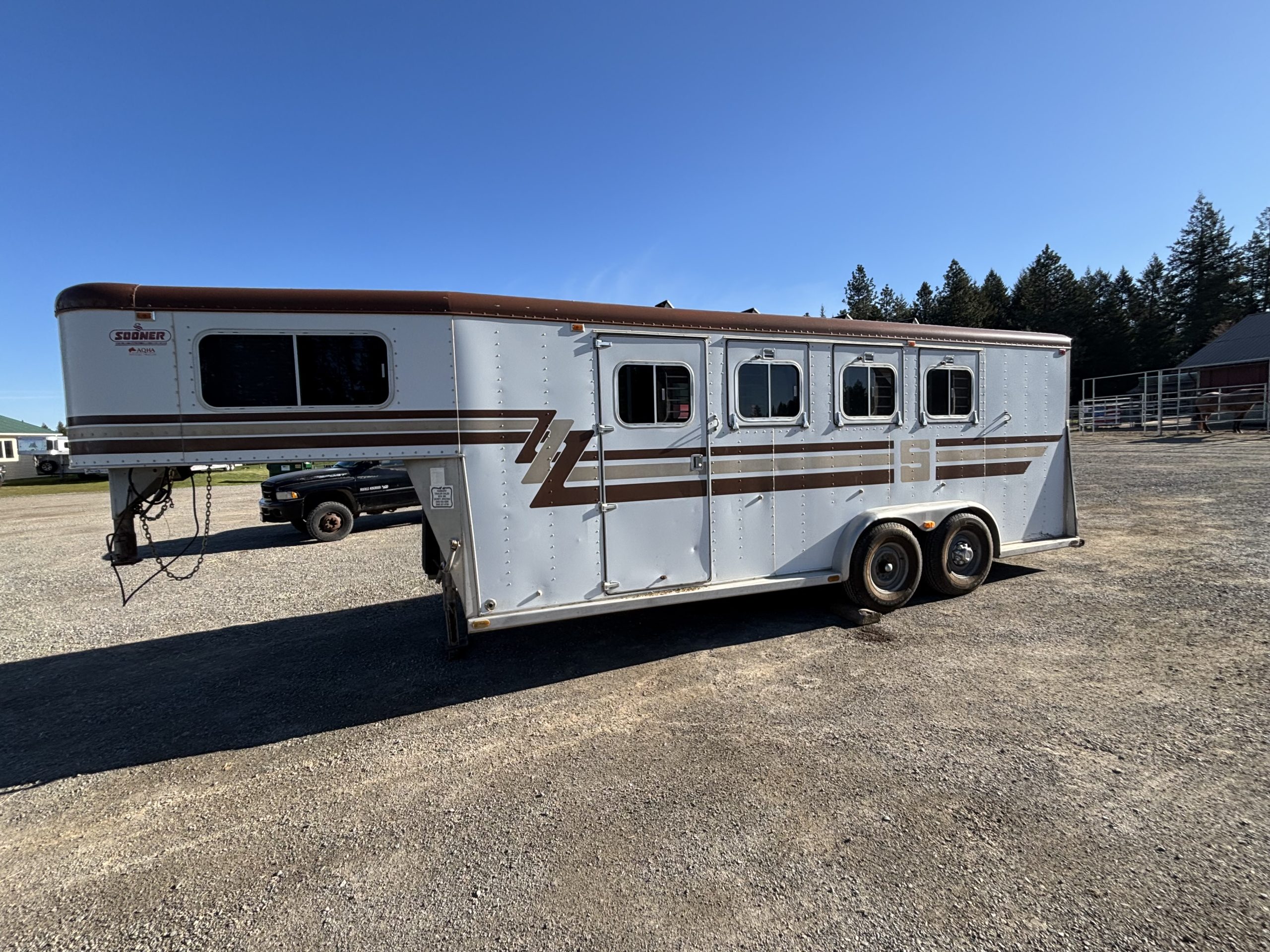 “Sooner” – 4 Horse Trailer. This is a great trailer. Don’t mind her age because she’s spent most of her life in an enclosed shop and had very little use. Safe; Dependable; Good Looking; Perfect for a family or hauling crew. Recently serviced and ready to hit the road. Pulls like a dream; No dents and scratches, cool color. Clean title in hand and we are ready to make a smokin hot deal. Priced at $13,250 and will consider a trade-in of horses, tack, or ranch equipment. All Aluminum, drop downs on the head side, sliders on the rump side, Swing open double doors, padded dividers and ramp, removeable rear tack that makes this a great trailer to haul equipment, ATVs or about anything. Escape door, extra large dressing room with bridle hooks, brush boxes, bars to hang clothes or blankets, a sink with vanity, water tank and pump, great lights in the dressing room, room for a queen mattress in the overshot, lots of room for all the travel supplies and stuff. There are new locks and keys for all the doors and drop down windows. All the latches were replaced or rebuilt. The vent covers were replaced. All the lights and wiring serviced and repaired. 1/5/26 Two new tires 12/25. The other two tires are decent and the spare tire is decent. Brakes were serviced and repaired on 12/25. Wheel bearings packed 12/25. Needs: a new faucet on the sink. Needs detailed. It is clean but is currently being used. Make: Four Horse Gooseneck, Manufacturer: Sooner, Year: 1990, Location: Congress, Arizona |